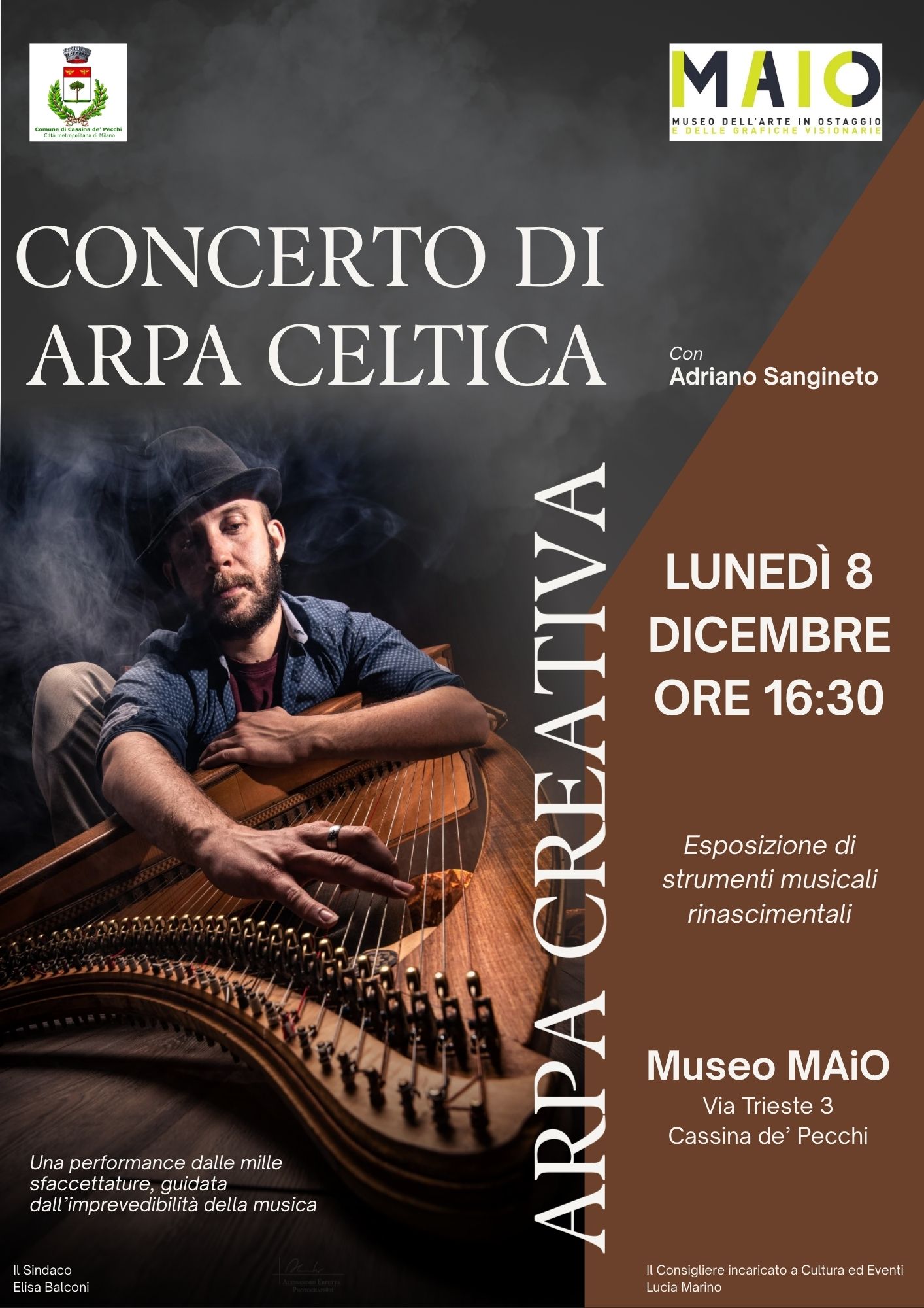 Non è un semplice concerto d’arpa celtica ma si tratta di una performance variopinta che dimostra la sorprendente versatilità di uno strumento da sempre relegato ad ambientazioni ancestrali. Melodie popolari, ritmiche moderne e sonorità pop creano uno spettacolo multiforme con colpi di scena che trascinano il pubblico verso situazioni inaspettate.