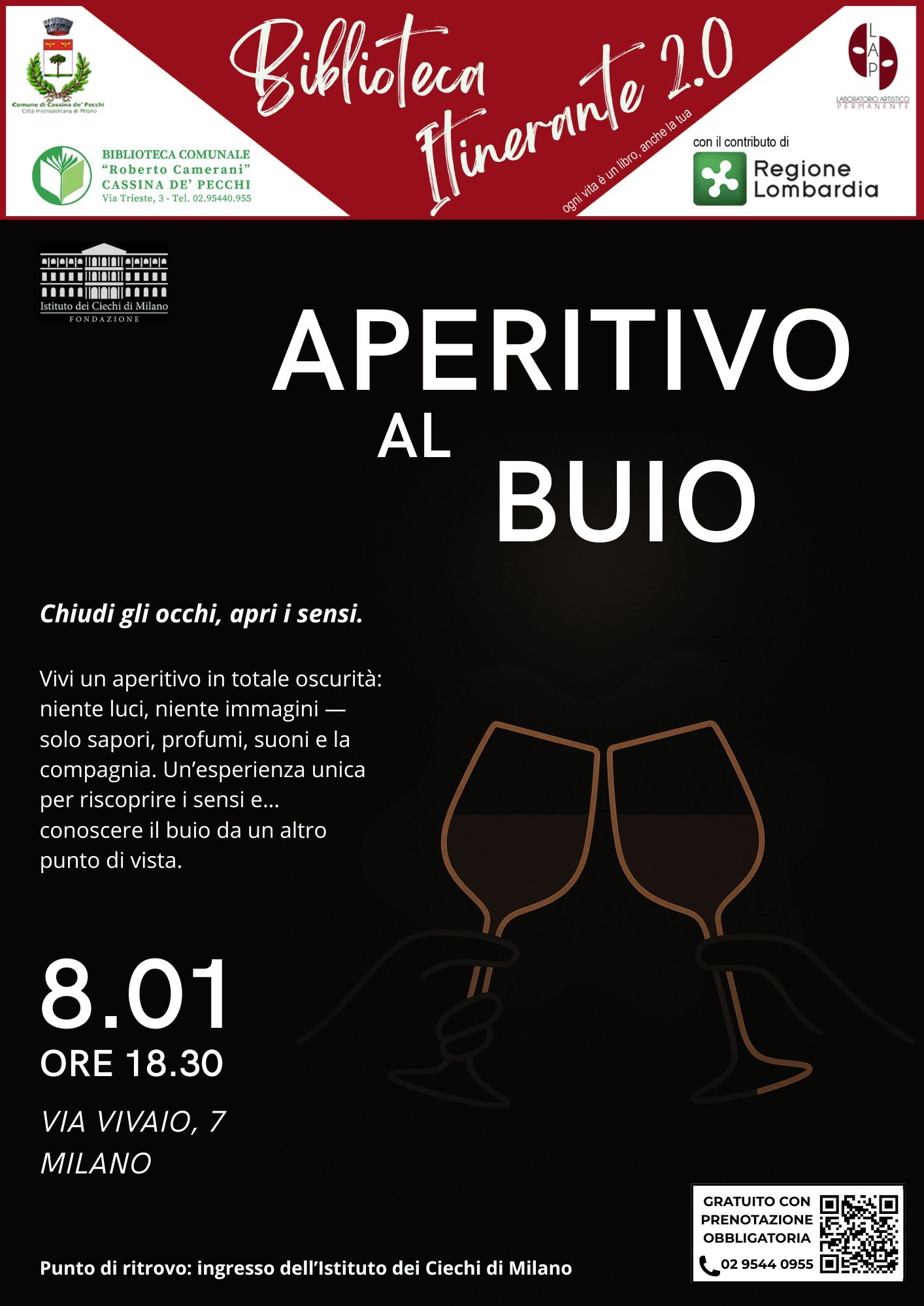 "Aperitivo al buio" è realizzato in collaborazione con l'Istituto dei Ciechi di Milano presso la loro sede.