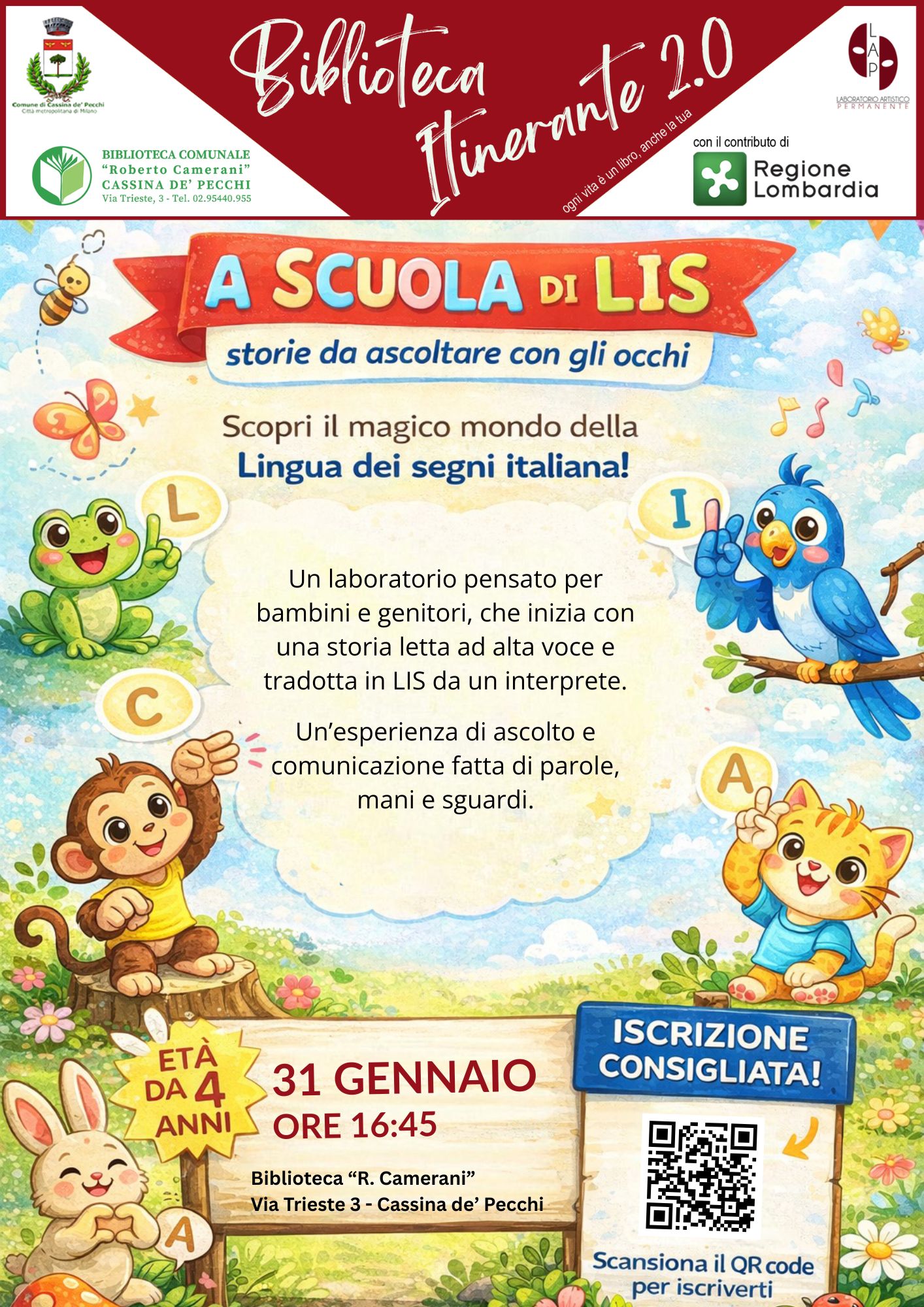 Durante gli incontri, i bambini impareranno alcune parole in LIS, scoprendo che comunicare può essere anche un movimento del corpo, una forma di rispetto, un ponte tra mondi diversi.